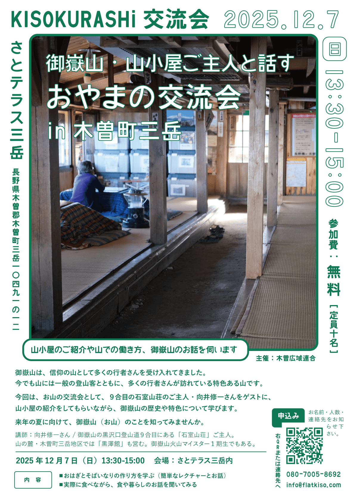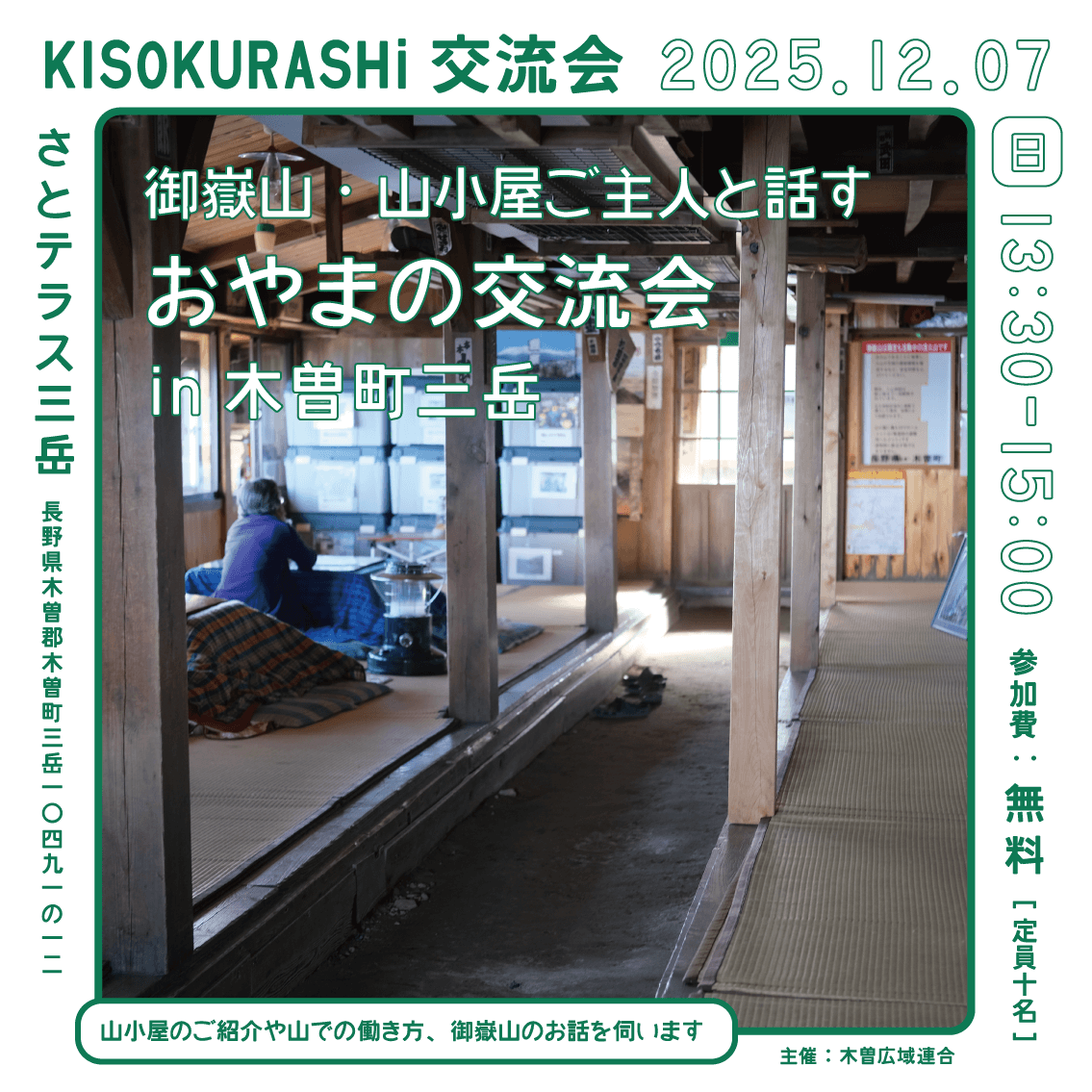 12月7日(日)KISOKURASHi交流会〜御嶽山・山小屋ご主人と話す お山の交流会